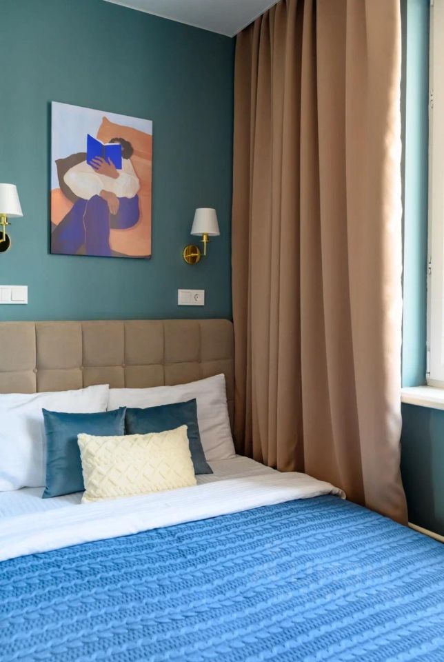 Зона спальни: двуспальная кровать с ортопедическим матрасом, телевизор 43 Smart TV с подключенной платной подпиской.