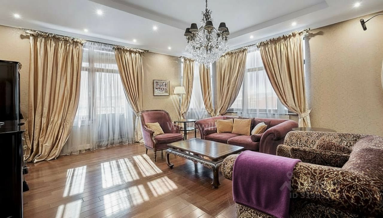 Планировка: гостиная-кухня-столовая, 4 спальни, две ванные комнаты, гостевой санузел, постирочная комната, холл. Квартира полностью укомплектована мебелью и бытовой техникой, установлены встроенные шкафы. Окна выходят на три стороны света. 2 машиноместа в подземном паркинге входят в стоимость.