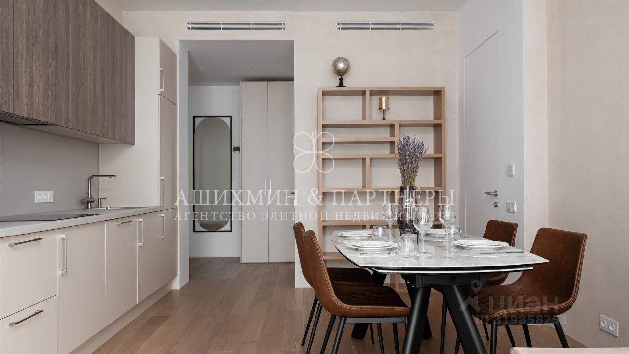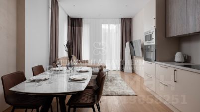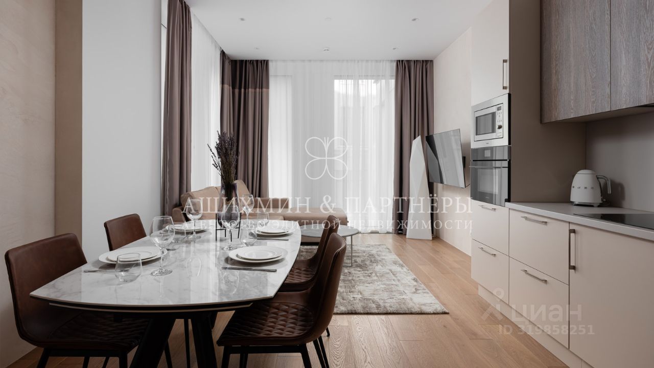 Апартамент полностью меблирован и декорирован. Элегантность интерьера раскрывается в сочетании пастельных стен и дубовой паркетной доски. В ванных комнатах привлекают внимание керамическая плитка, душевые перегородки из тонированного стекла и хромированная фурнитура с изящными изгибами. На кухне бытовая техника от Teka и Smeg, в гостевом санузле - стиральная машина Bosch.