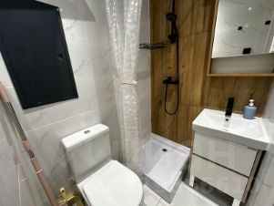 В квартире находится 2-х спальный диван, 2-х спальное место на 2 этаже. Кухонный гарнитур, холодильник, микроволновка, чайник. Совмещенный санузел, душ, стиральная.