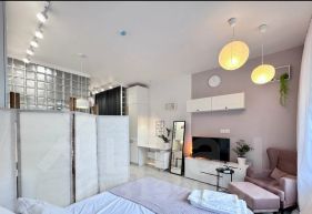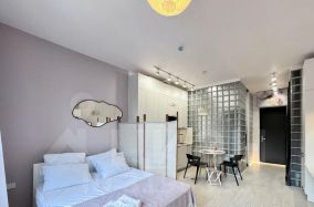 В квартире есть вся необходимая мебель и современная техника: кондиционер, холодильник, сейф, посудомоечная и стиральная машины, телевизор. Просторная ванная комната оснащена ванной. Продуманная планировка студии позволяет использовать каждый квадратный метр с пользой и комфортом.