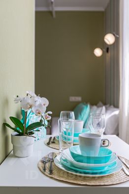 Студия полностью оборудована для комфортного проживания: телевизор, бесплатный Wi-Fi, стиральная машина, утюг, фен, варочная панель, чайник и микроволновка. Есть штопор и бокалы. Регулярная уборка профессиональной химией и дезинфекция от насекомых, а также смена белья на чистое и свежее проводятся перед каждым заездом.