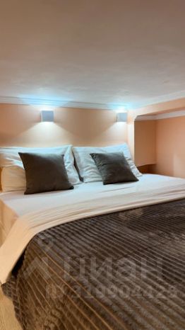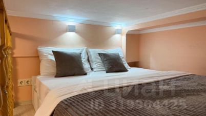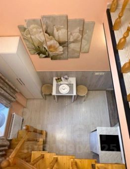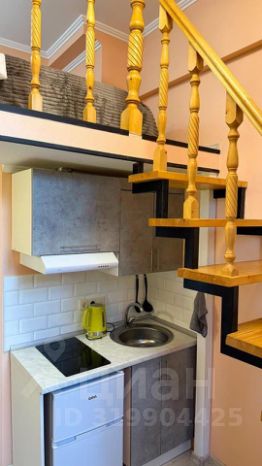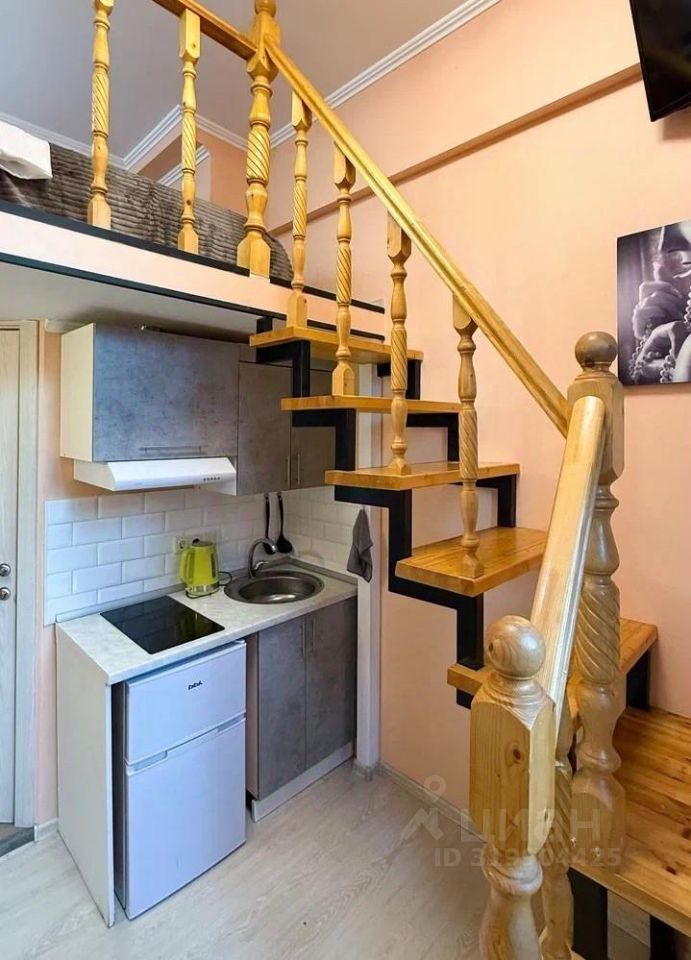 Студия двухуровневая, кровать находится на втором уровне.