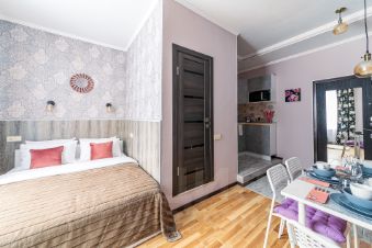 Студия полностью оборудована для комфортного проживания: телевизор, бесплатный Wi-Fi, стиральная машина, утюг, фен, варочная панель, чайник и микроволновка. Есть штопор и бокалы. Регулярная уборка профессиональной химией и дезинфекция от насекомых, а также смена белья на чистое и свежее проводятся перед каждым заездом.