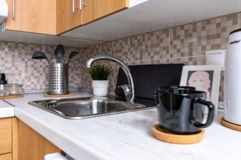 Студия полностью оборудована для комфортного проживания: телевизор, бесплатный Wi-Fi, стиральная машина, утюг, фен, варочная панель, чайник и микроволновка. Есть штопор и бокалы. Регулярная уборка профессиональной химией и дезинфекция от насекомых, а также смена белья на чистое и свежее проводятся перед каждым заездом.