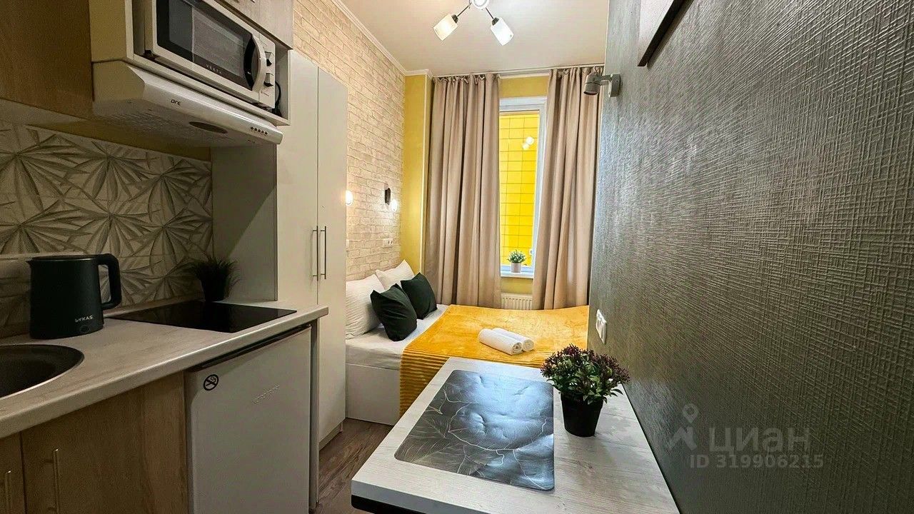Студия полностью оборудована для комфортного проживания: телевизор, бесплатный Wi-Fi, стиральная машина, утюг, фен, варочная панель, чайник и микроволновка. Есть штопор и бокалы. Регулярная уборка профессиональной химией и дезинфекция от насекомых, а также смена белья на чистое и свежее проводятся перед каждым заездом.