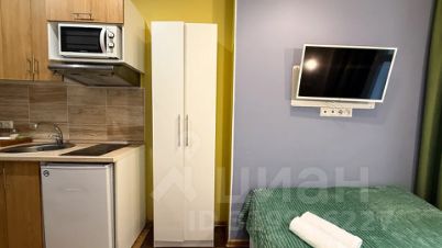 Студия полностью оборудована для комфортного проживания: телевизор, бесплатный Wi-Fi, стиральная машина, утюг, фен, варочная панель, чайник и микроволновка. Есть штопор и бокалы. Регулярная уборка профессиональной химией и дезинфекция от насекомых, а также смена белья на чистое и свежее проводятся перед каждым заездом.