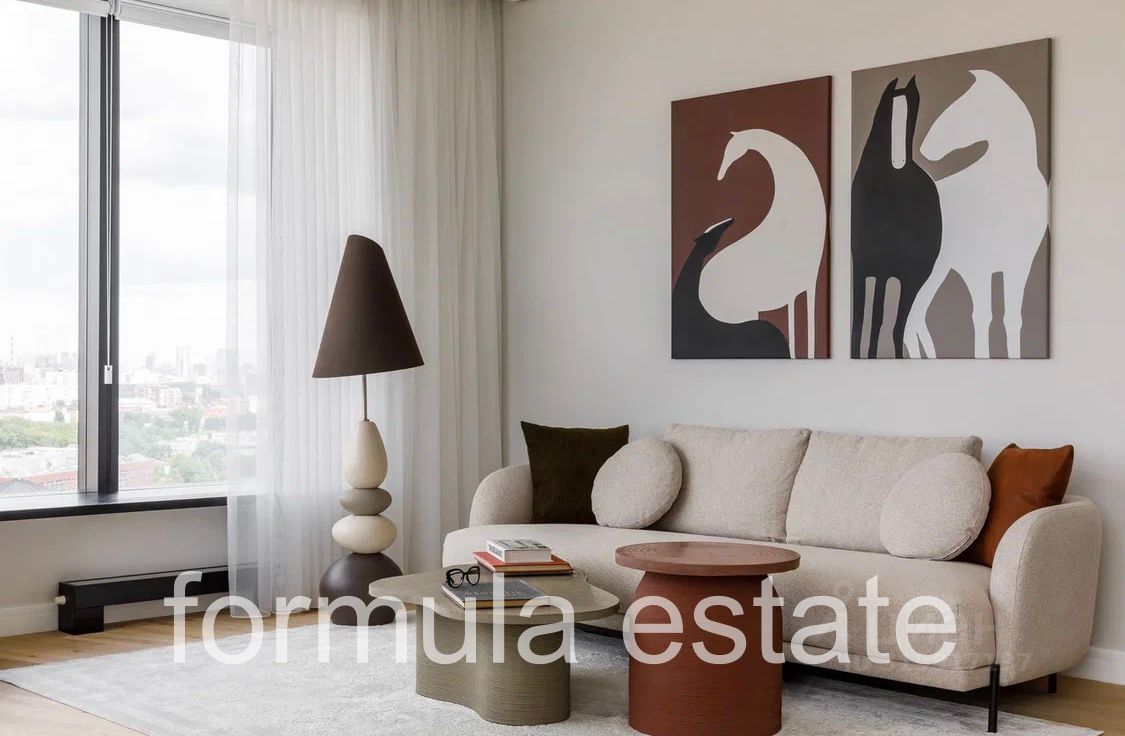 Панорамные окна открывают прекрасные виды на город .Система кондиционирования и вентиляции позволяет поддерживать комфортную температуру круглый год .Высокие потолки .шторы blackout . Широкие подоконники.Вместительная система хранения (встроенные шкафы с подсветкой и вешалками ) позволяет разместить даже гардероб шопоголика. Интерьер выполнен в основном в спокойных светлых тонах , тщательно подобранные аксессуары и предметы искусства .