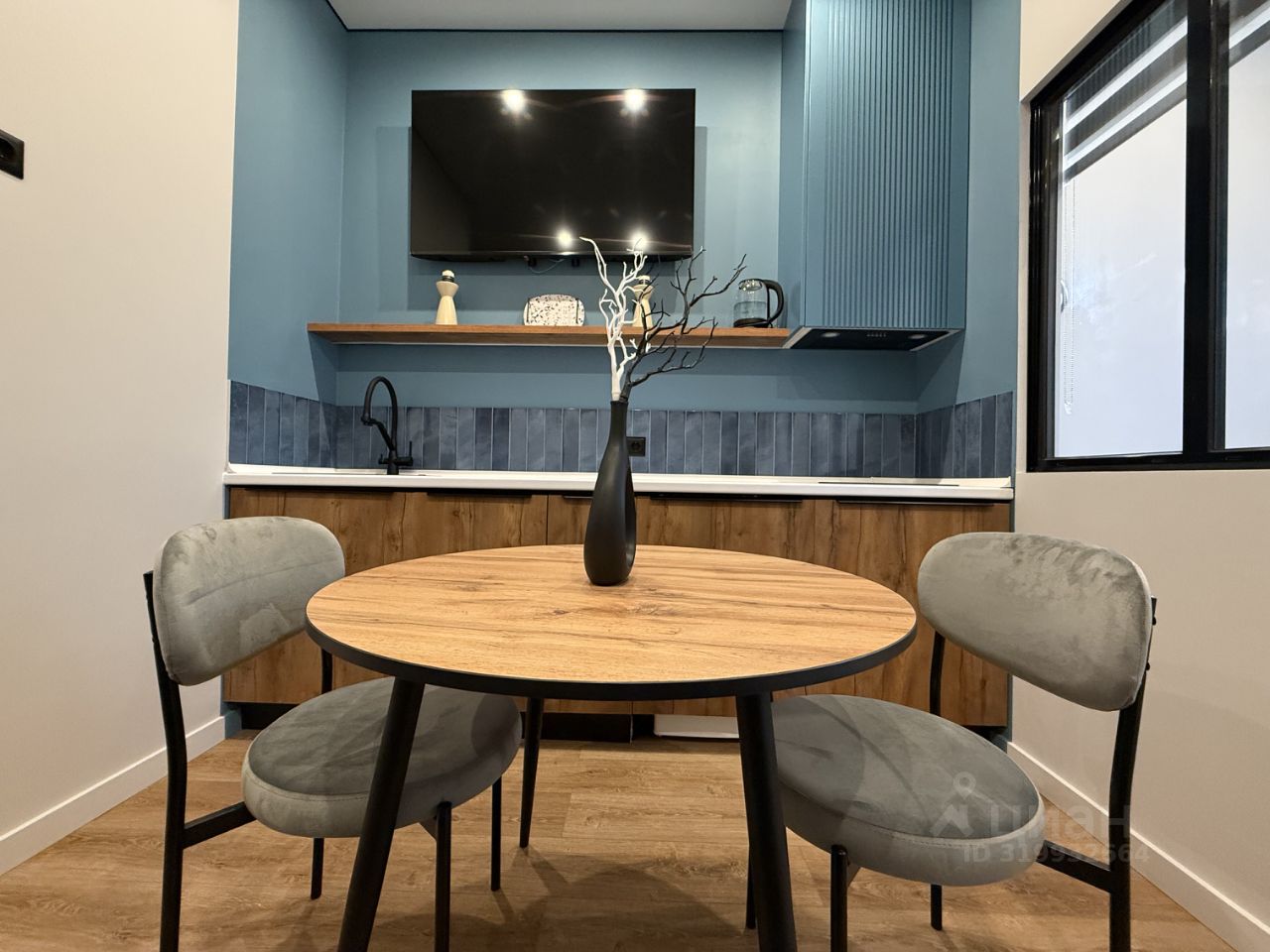 В квартире выполнен дизайнерский ремонт, что делает её особенно привлекательной и стильной. В комнате есть вся необходимая мебель для комфортного проживания. Кухня оборудована современной техникой: кондиционером, холодильником, телевизором, посудомоечной и стиральной машинами. В ванной комнате установлена душевая кабина.