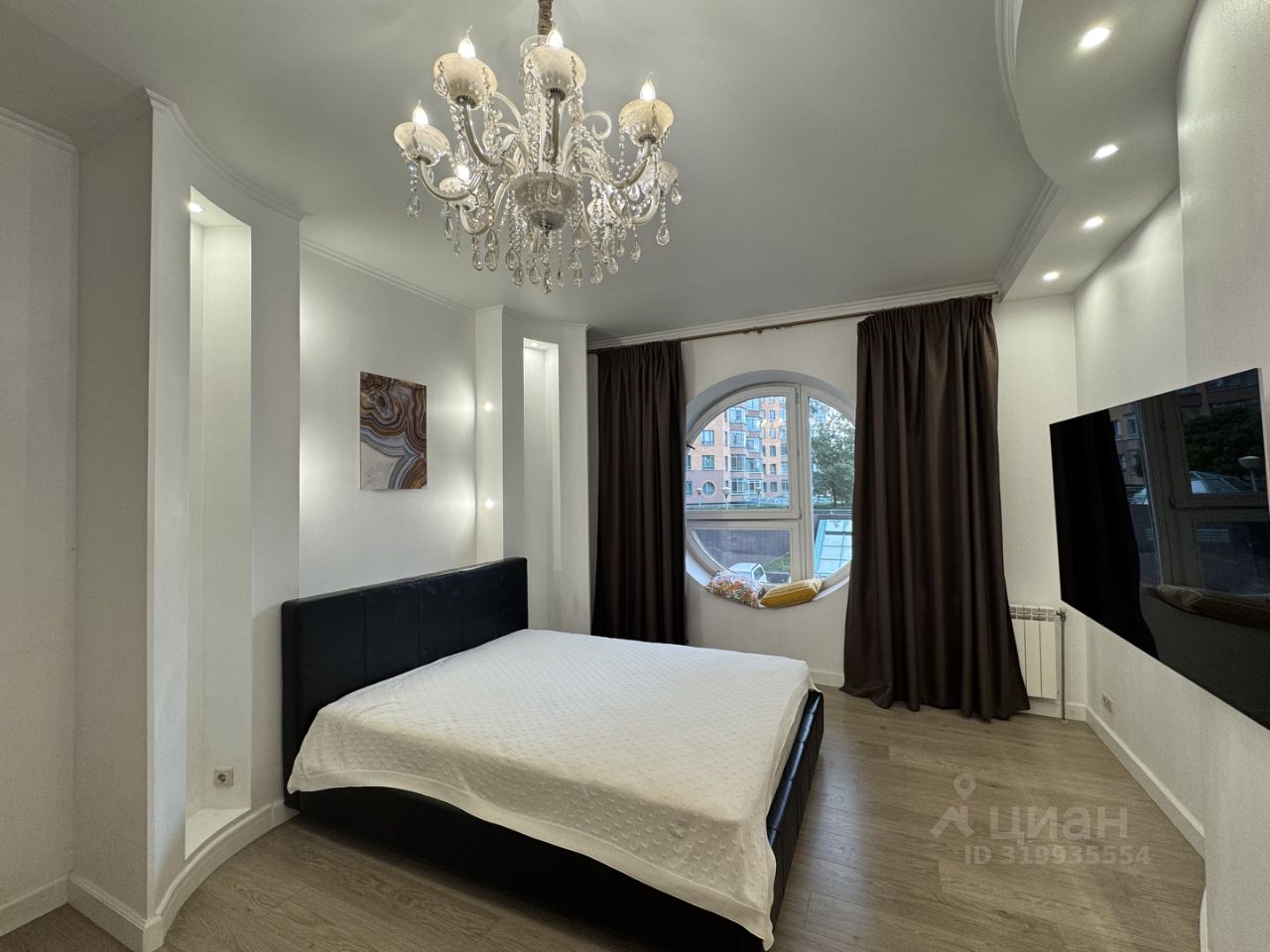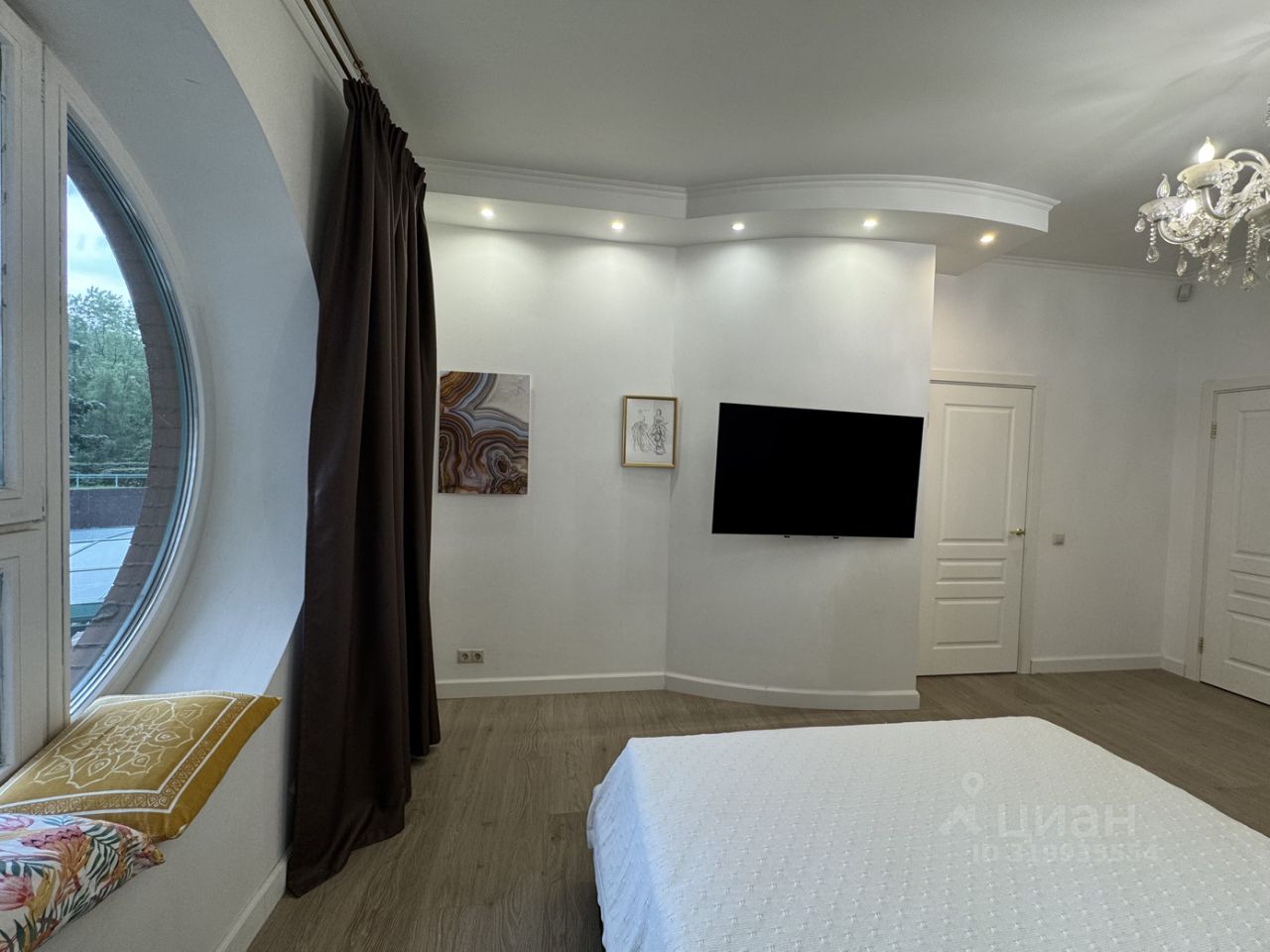 Планировка: большая гостиная- кухня- столовая, большая спальня с своей гардеробной, совмещенный санузел с душем, большая гардеробная при входе.