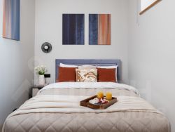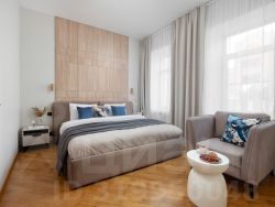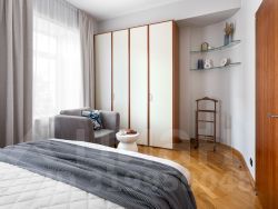 В спальных комнатах ортопедические матрасы, удобные двуспальные кровати и много мест для хранения. В квартире две изолированные спальные комнаты и одна проходная.