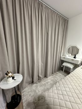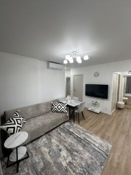 В квартире есть всё необходимое для жизни: кондиционер - з шт, холодильник, телевизор LG 55, посудомоечная и стиральная машина с функцией сушки, пылесос, гладильная доска, утюг, посуда, постельное белье. В комнатах и на кухне стоит современная мебель. Санузел раздельный.
