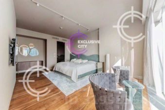Лот 3266. Просторные Апартаменты в современном стиле. Видовые характеристики: Панорамный вид на город, высокий этаж. Функциональная планировка: гостиная, совмещенная с кухней; 2 спальни с собственными санузлами, гардеробные комнаты; хоз.блок; холл; гостевой санузел.