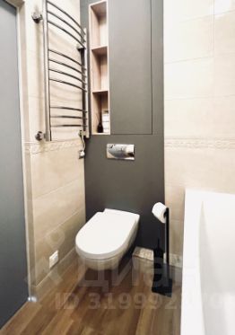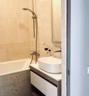 В ванной комнате большая глубокая ванна, подвесной унитаз, все Villeroy&Boch.