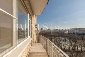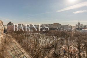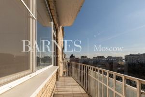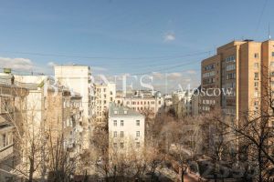 Квартира очень светлая, с двумя балконами и прямым видом на Патриаршие пруды и центр Москвы.