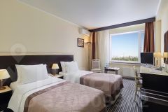 Комфортабельный однокомнатный номер с современным дизайном, состоящий из прихожей и спальной комнаты. Номер оборудован системой кондиционирования воздуха. В номере удобная современная мебель, 2 кровати (90*200), а также организованное рабочее пространство с письменным столом.