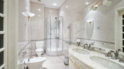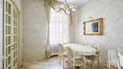 Уютная квартира площадью 150 м² в доме на знаменитой Тверской улице в центре Москвы. Выполнен светлый ремонт в классическом стиле. Высота потолков 3,2 метра. Спланирована просторная гостиная, кухня-столовая, 2 спальни, кабинет, ванная комната с ванной и душевой, второй санузел с душем, холл. Окна выходят в тихий внутренний двор.