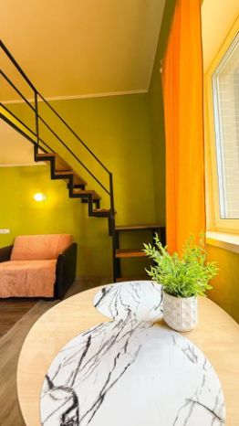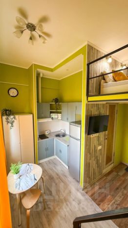 Студия двухуровневая, кровать находится на втором уровне!
