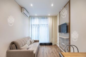 ID 579793. Без животных. Предлагается в аренду апартамент формата "евродвушка" в ЖК бизнес-класса "Зорге 9". Выполнен качественный современный ремонт. Апартамент полностью меблирован и укомплектован необходимой техникой. Планировка: кухня гостиная; изолированная спальня; раздельный санузел. Установлены: кондиционирование; проточный водонагреватель. Высокие потолки. Панорамное остекление. Окна во двор.