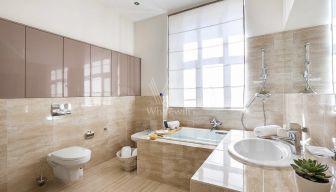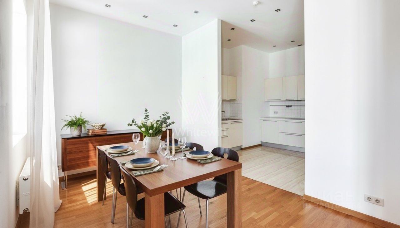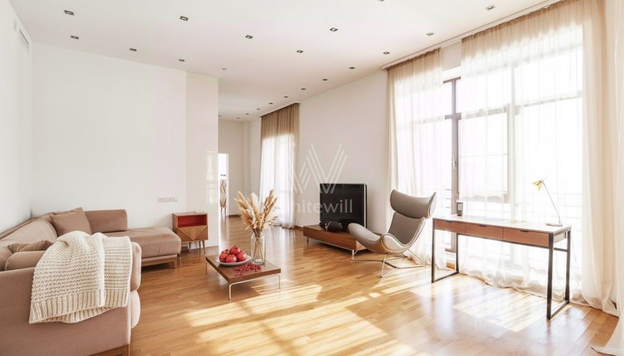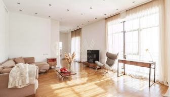 Просторная светлая квартира в камерном доме в центре Москвы, в 500 метрах от парка Музеон. Квартира площадью 240 м² расположена на 7-м этаже, это единственная квартира на этаже. Выполнена современная отделка в лаконичных светлых тонах, панорамные окна в пол, высокие потолки. Из окон открывается вид на исторический центр города.