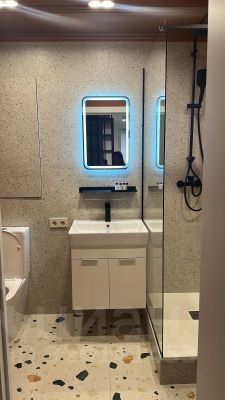 В квартире сделан дизайнерский ремонт, который придётся по вкусу ценителям стильного современного интерьера. В комнатах и на кухне есть вся необходимая мебель, чтобы сразу заехать и чувствовать себя как дома. Для вашего комфорта установлены кондиционер (сплит система), холодильник, посудомоечная и стиральная машины, а также телевизор. вся техника и мебель новые. В ванной комнате — современная душевая кабина, полы с подогревом. Вид из окон на благоустроенный двор с детскими площадками и зонами релакса.