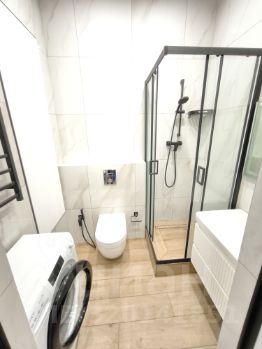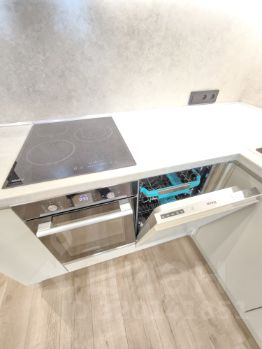 В квартире произведен дизайнерский ремонт, установлен встроенный кухонный гарнитур с новой современной бытовой техникой (холодильник, плита, духовой шкаф, посудомоечная машина, вытяжка с угольными фильтрами), полностью оборудованный санузел с системой теплых полов, установлен кондиционер + центральная система приточной вытяжной вентиляции, Панорамное остекление. Лоджия застеклена и утеплена установлены теплые полы возможно использовать в качестве рабочего кабинета.