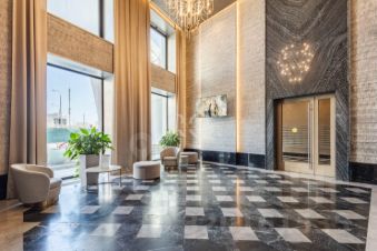 Дом оснащен тремя пассажирскими и тремя грузовыми лифтами, что удобно для жильцов. Подземная парковка избавит от проблем с поиском места для автомобиля. Рядом с домом находятся школы, детские сады, клиники и магазины, что делает этот район привлекательным для семей и людей, ценящих удобство.