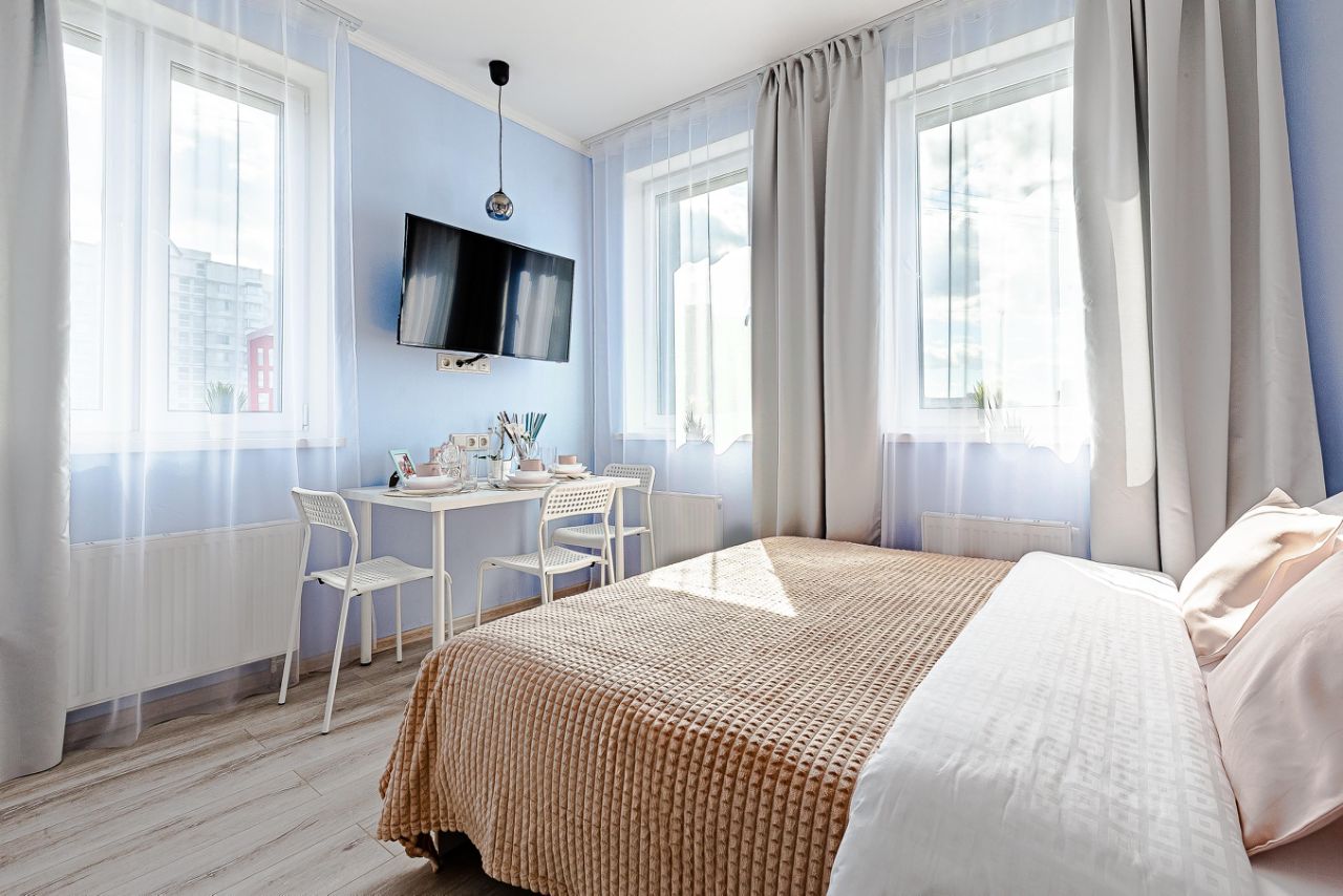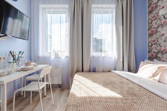 Студия полностью оборудована для комфортного проживания: телевизор, бесплатный Wi-Fi, стиральная машина, утюг, фен, варочная панель, чайник и микроволновка. Есть штопор и бокалы. Регулярная уборка профессиональной химией и дезинфекция от насекомых, а также смена белья на чистое и свежее проводятся перед каждым заездом.