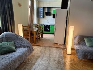 Планировка включает две изолированные спальни, кухню-гостиную. На окнах установлены деревянные стеклопакеты. Высокие потолки ( 3,20 ). Просторная ванная комната.