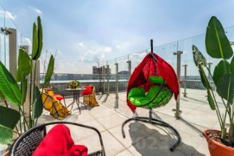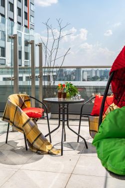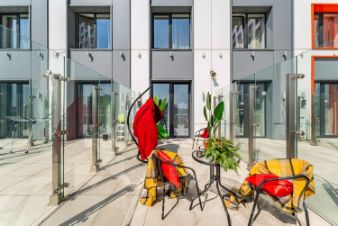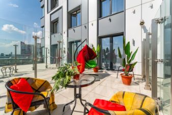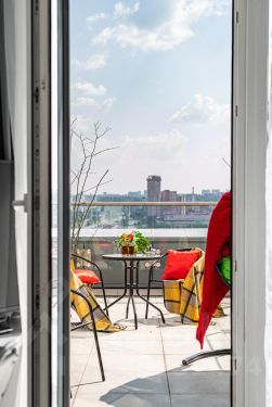 Рады приветствовать вас в наших дизайнерских апартаментах с личной террасой, где можно насладиться видом на город и Москва реку в кресле-гамаке