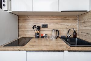 Кухня со всей необходимой посудой и техникой, где при желании вы сможете комфортно приготовить еду