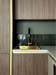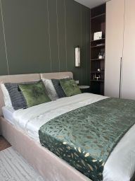 Оборудована просторной гардеробной комнатой и множеством мест для хранения. Вся техника новая. Стиральная и посудомоечные машины, плита и духовка с функцией микроволновки, встроенный холодильник, вытяжка, кондиционер. Техника от известного бренда Gorenje