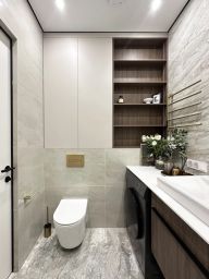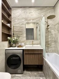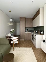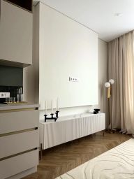 Функционально и эстетично везде, и в спальне и в кухне-гостиной, и в ванной и в гардеробной.