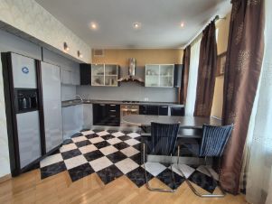 Лот: 431521. БЕЗ КОМИССИИ. Дом-украшение центра Москвы! Превосходная двухуровневая квартира-пентхаус, расположенная в самом прекрасном месте исторического центра Москвы — на улице Остоженка! Дом с историей, построен в 1910 году, отреставрирован и имеет прекрасное техническое и санитарное состояние. В подъезде круглосуточно дежурит консьерж. Большая и удобная по планировке квартира расположена на последнем этаже дома. Планировка квартиры: первый этаж — холл-прихожая с большим зеркальным шкафом-купе для верхней одежды, кухня-столовая, отдельная большая гостиная, комната (спальня или кабинет), рядом санузел; второй уровень (мансардный) — две спальни с санузлами, вместительная постирочная комната со шкафом для белья. Квартира полностью меблирована, есть вся необходимая бытовая техника.