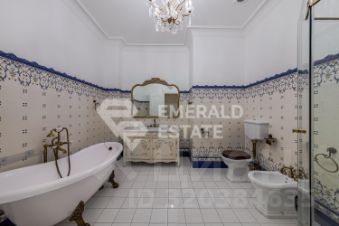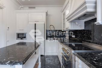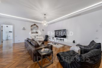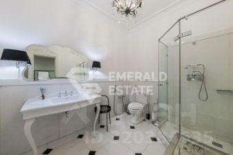 Квартира оснащена: 4 комнатами, 3 спальнями, 3 с/у, балкон, прачечной и 3 гардеробными. Выполнен качественный дизайнерский ремонт. На полу выстелена паркетная доска из дуба, в зонах где плитка - подогрев пола. В квартире проведено современное кондиционирование.