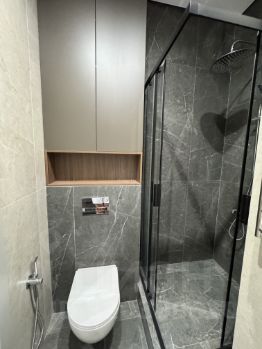 В квартире имеется все для комфортного проживания. Шикарная кухня с встроенной техникой: холодильник, плита, духовой шкаф, микроволновая печь. В гостиной имеется ортопедический диван - кровать, где могут разместиться гости и зона ТВ.