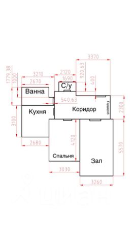 Общая площадь квартиры — 56,4 кв. м, жилая - 30,6 кв. м, площадь кухни — 9 кв. м. Комнаты имеют удобную площадь: 18,1 кв. м и 12,5 кв. м.