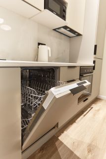 Есть всё необходимое для комфортного проживания. В квартире большой раскладной диван, кресло-кровать, стиральная, посудомоечная машина.