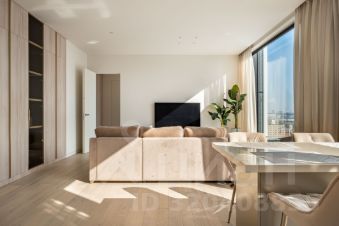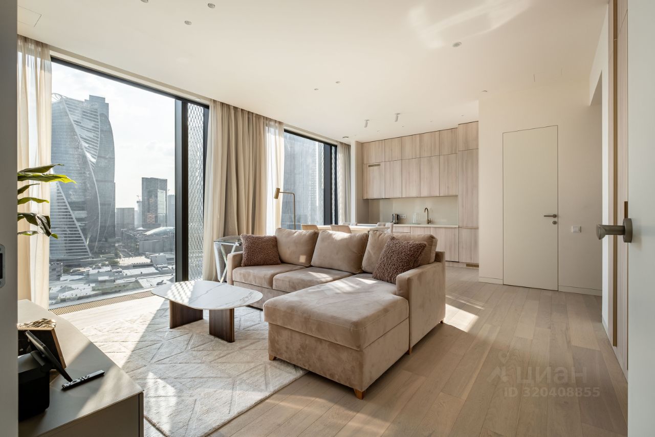 Общая площадь — 70 м², расположена на 16 этаже. Планировка включает просторную кухню-гостиную, уютную спальню, совмещенный санузел и дополнительный гостевой санузел. Широкие панорамные окна от пола до потолка открывают прекрасные виды на Москву-реку и башни "Москва-Сити".
