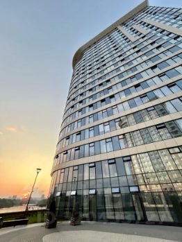 кухня-гостиная - 20 м, спальня - 17 м. Панорамное остекленнение.