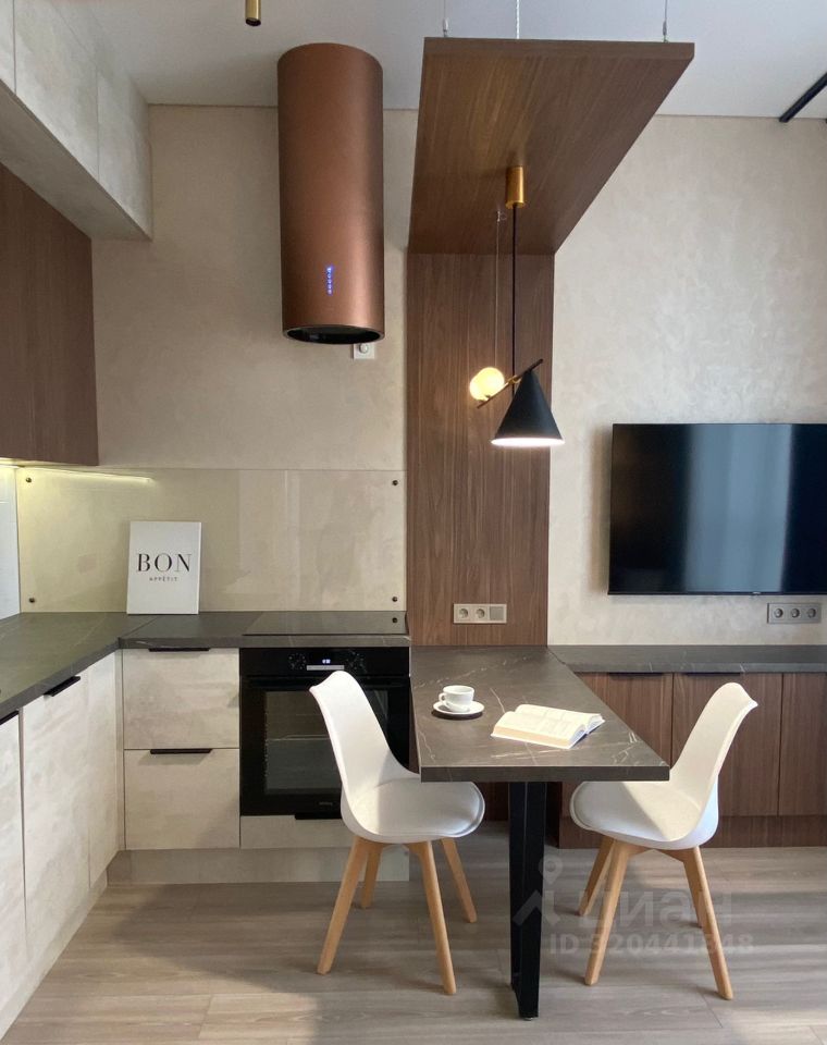 Кухня-гостиная (Современный кухонный гарнитур, встраиваемая бытовая техника от европейских брендов, включая широкую посудомоечную машину, комплект необходимой мебели для зоны гостиной)