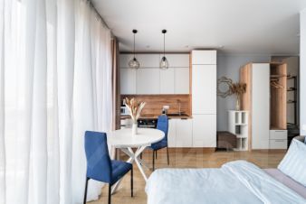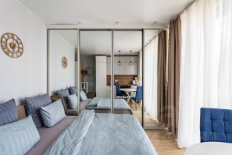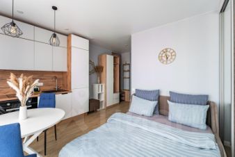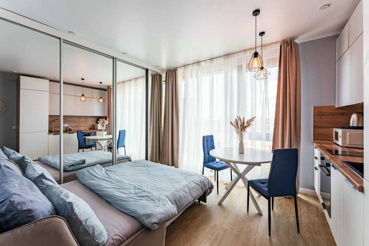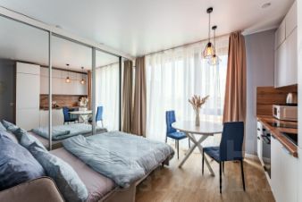 Видовая студия делюкс в доме бизнес класса Копенгаген площадью 29 кв.м. с кроватью 160х200 расположены на 8 этаже нового жилого комплекса Метрополия.