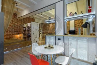 Апартаменты с высококачественным ремонтом в стиле Loft. Планировка: кухня-гостиная-спальня, один с/у. Панорамное остекление.
