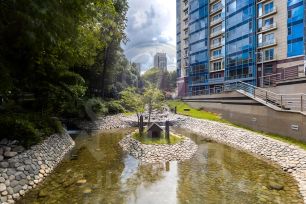 На территории комплекса расположена большая детская площадка, спортивная площадка, искусственная река с каскадом водопадов, ландшафтный парк с беседками. Территория охраняемая, огороженная, консьерж-сервис.