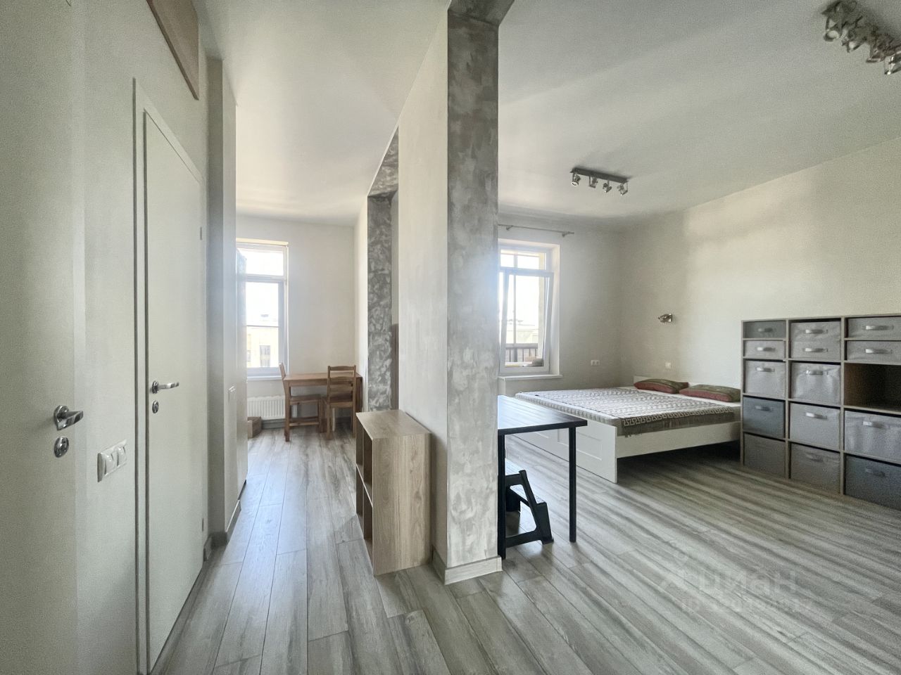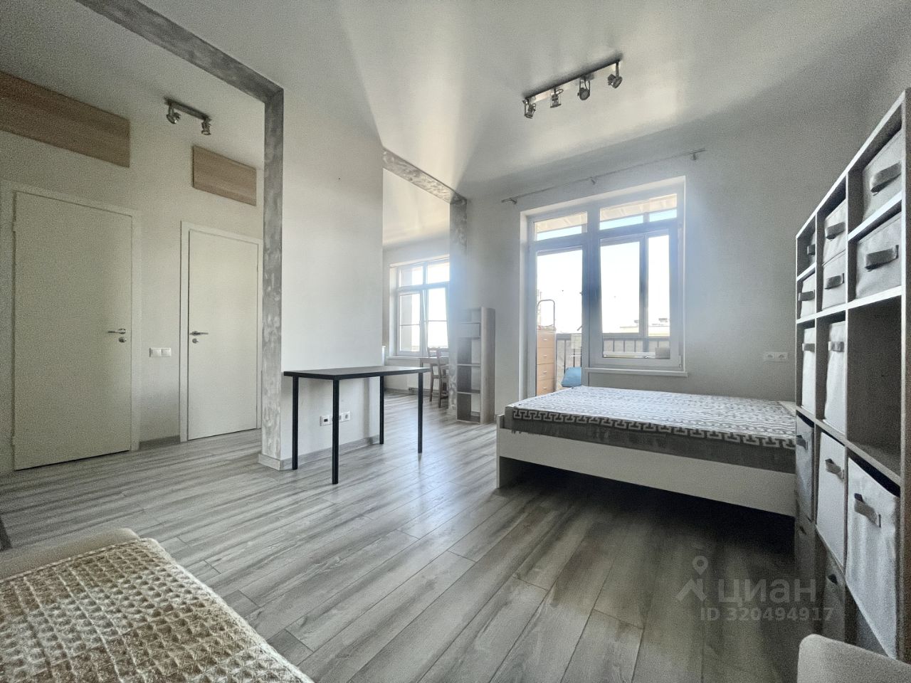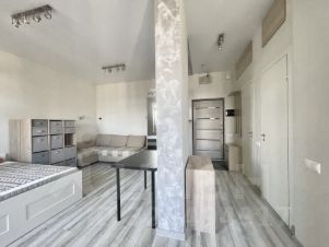 Квартира расположена на 15 этаже 15-этажного монолитного дома, построенного в 2020 году. Общая площадь составляет 34,6 кв. м, а высота потолков — впечатляющие 3,12 метра.