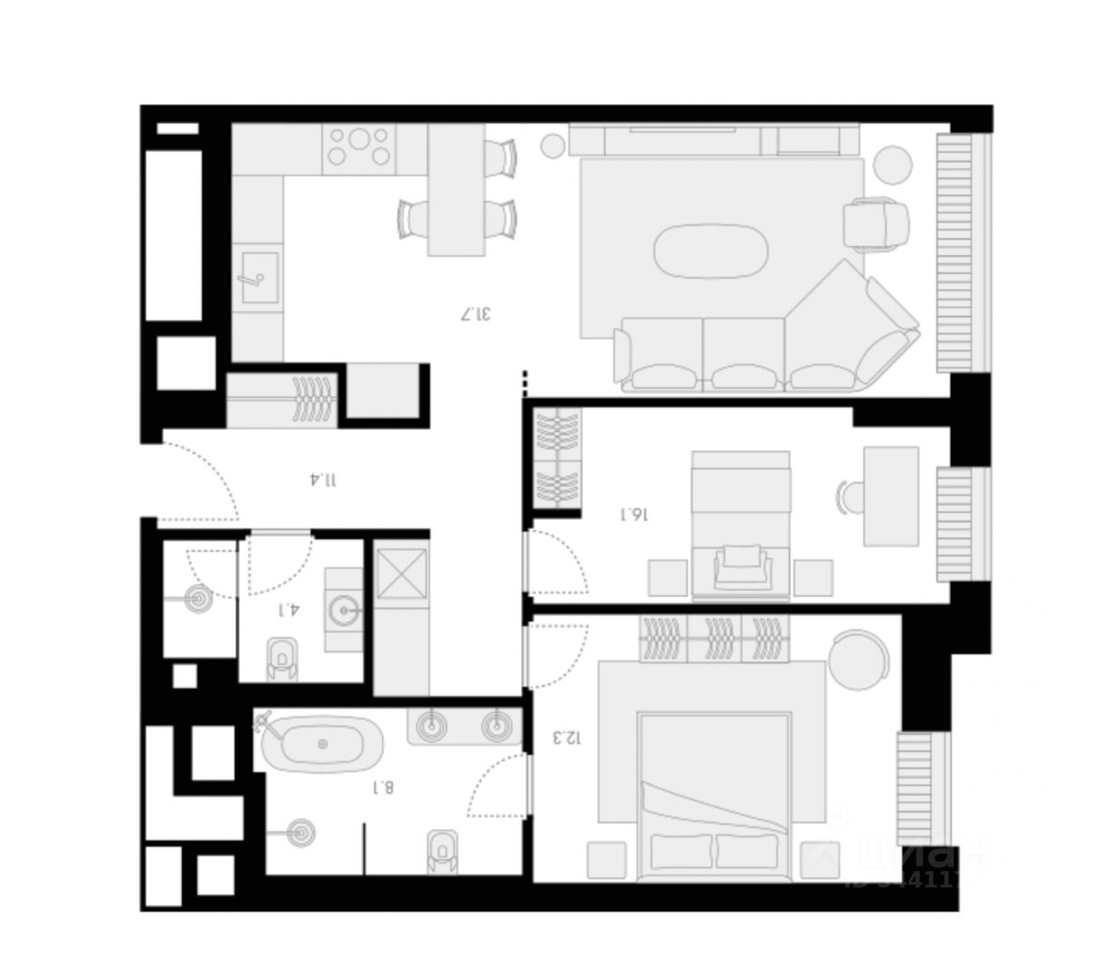 Апартаменты полностью укомплектованы мебелью и техникой для комфортного проживания: стиральная машина, сушилка, посудомоечная машина, микроволновая печь, холодильник и т.д.
