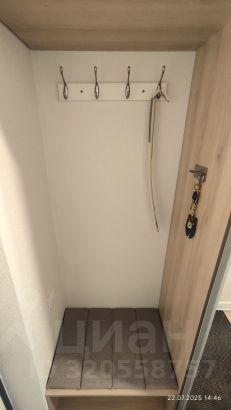 Прихожая: платяной шкаф, вешалка для одежды, подставка для обуви со скамейкой, зеркало.