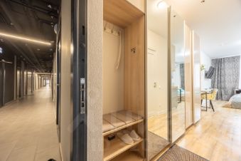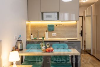 В студии выполнен дизайнерский ремонт. Апартаменты укомплектованы бытовой техникой и мебелью: