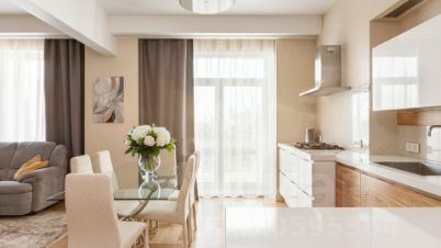 Квартира с 2-мя спальнями общей площадью 80 м² на Кутузовском проспекте. Квартира расположена на 5 этаже сталинского кирпичного дома. Выполнен ремонт в современном стиле в лаконичных светлых тонах.