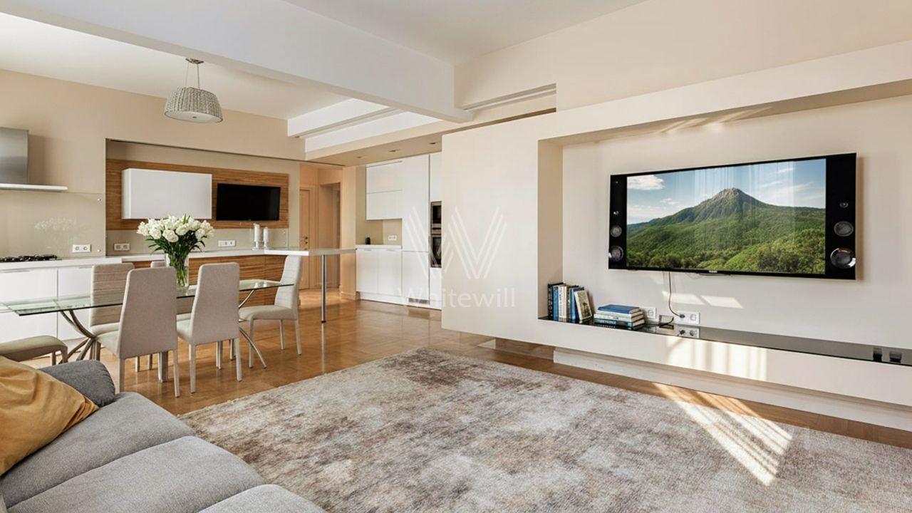 Квартира полностью меблирована и укомплектована бытовой техникой, установлены кондиционеры. Окна кабинета выходят на Кутузовский проспект, кухни-гостиной и мастер спальни в тихий двор.